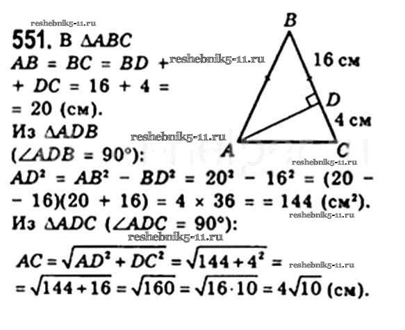 Готовая домашняя работа с ответами по Геометрии за 8 класс Мерзляк, Полонский, Якир Учебник Алгоритм успеха Вентана-граф 2015 ФГОС - § 16. Теорема Пифагора 551