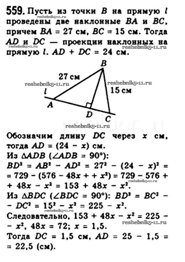 Готовая домашняя работа с ответами по Геометрии за 8 класс Мерзляк, Полонский, Якир Учебник Алгоритм успеха Вентана-граф 2015 ФГОС - § 16. Теорема Пифагора 559