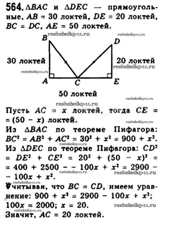 Готовая домашняя работа с ответами по Геометрии за 8 класс Мерзляк, Полонский, Якир Учебник Алгоритм успеха Вентана-граф 2015 ФГОС - § 16. Теорема Пифагора 564