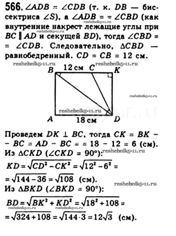 Готовая домашняя работа с ответами по Геометрии за 8 класс Мерзляк, Полонский, Якир Учебник Алгоритм успеха Вентана-граф 2015 ФГОС - § 16. Теорема Пифагора 566