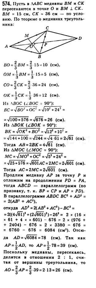Готовая домашняя работа с ответами по Геометрии за 8 класс Мерзляк, Полонский, Якир Учебник Алгоритм успеха Вентана-граф 2015 ФГОС - § 16. Теорема Пифагора 574