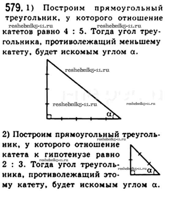 Готовая домашняя работа с ответами по Геометрии за 8 класс Мерзляк, Полонский, Якир Учебник Алгоритм успеха Вентана-граф 2015 ФГОС - § 17. Тригонометрические функции острого угла прямоугольного треугольника 579
