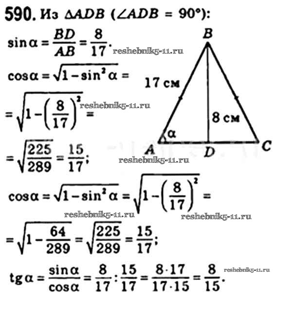 Готовая домашняя работа с ответами по Геометрии за 8 класс Мерзляк, Полонский, Якир Учебник Алгоритм успеха Вентана-граф 2015 ФГОС - § 17. Тригонометрические функции острого угла прямоугольного треугольника 590