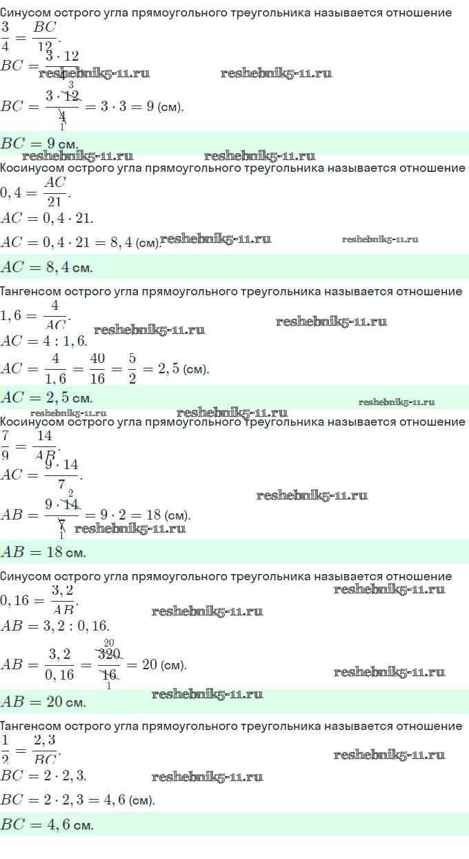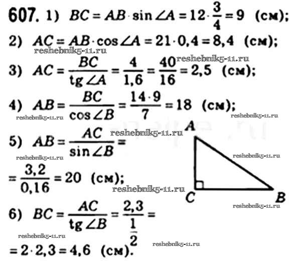 Готовая домашняя работа с ответами по Геометрии за 8 класс Мерзляк, Полонский, Якир Учебник Алгоритм успеха Вентана-граф 2015 ФГОС - § 18. Решение прямоугольных треугольников 607