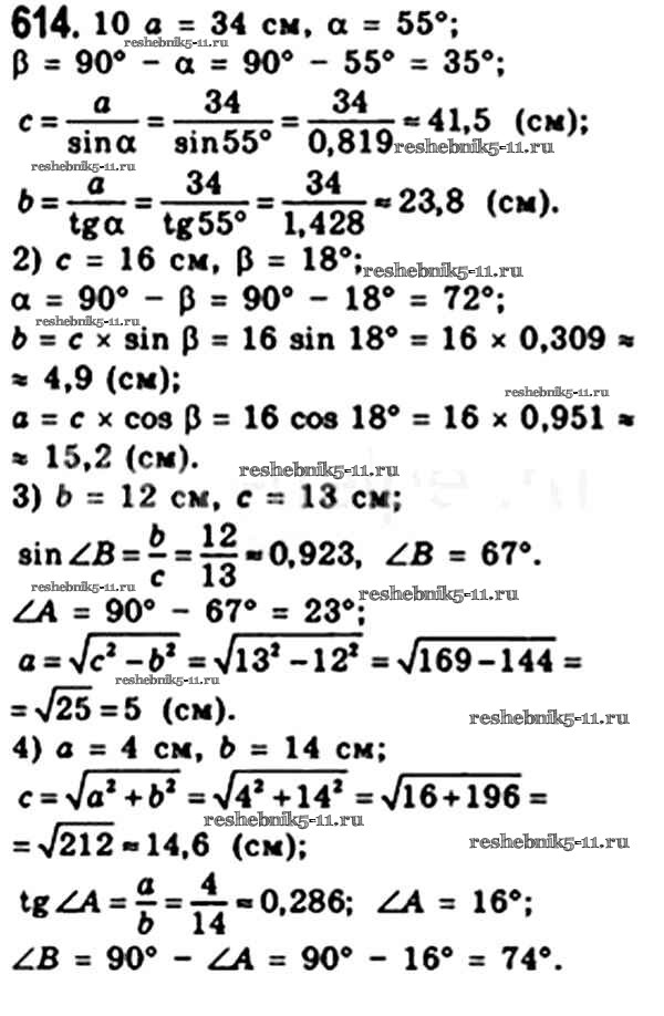 Готовая домашняя работа с ответами по Геометрии за 8 класс Мерзляк, Полонский, Якир Учебник Алгоритм успеха Вентана-граф 2015 ФГОС - § 18. Решение прямоугольных треугольников 614