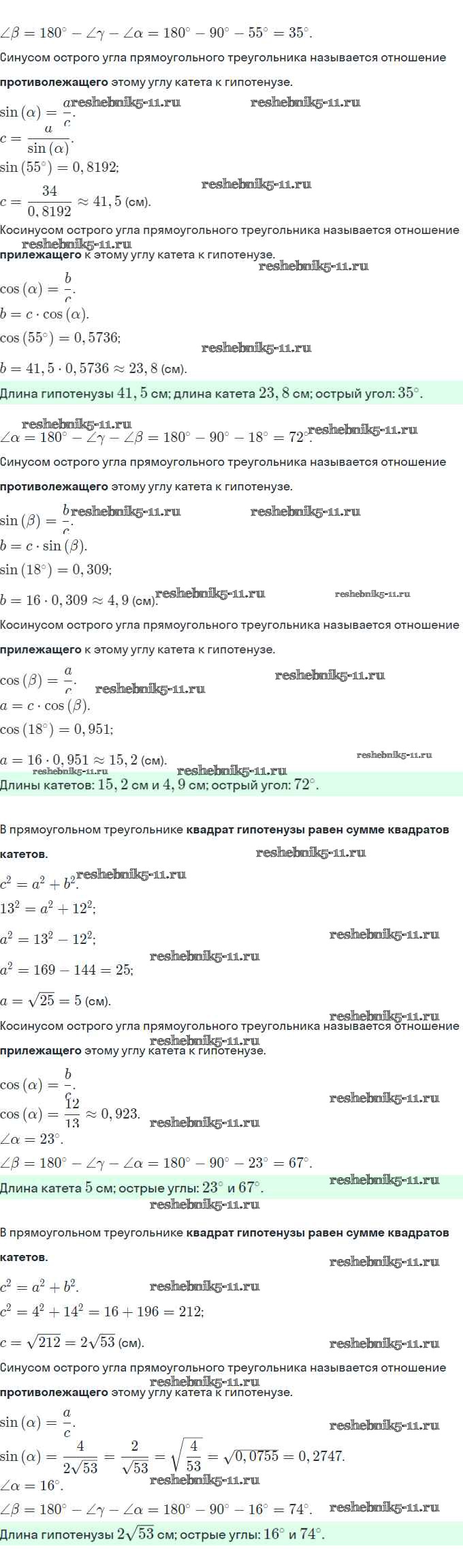 § 18. Решение прямоугольных треугольников