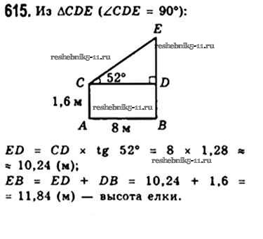 Готовая домашняя работа с ответами по Геометрии за 8 класс Мерзляк, Полонский, Якир Учебник Алгоритм успеха Вентана-граф 2015 ФГОС - § 18. Решение прямоугольных треугольников 615