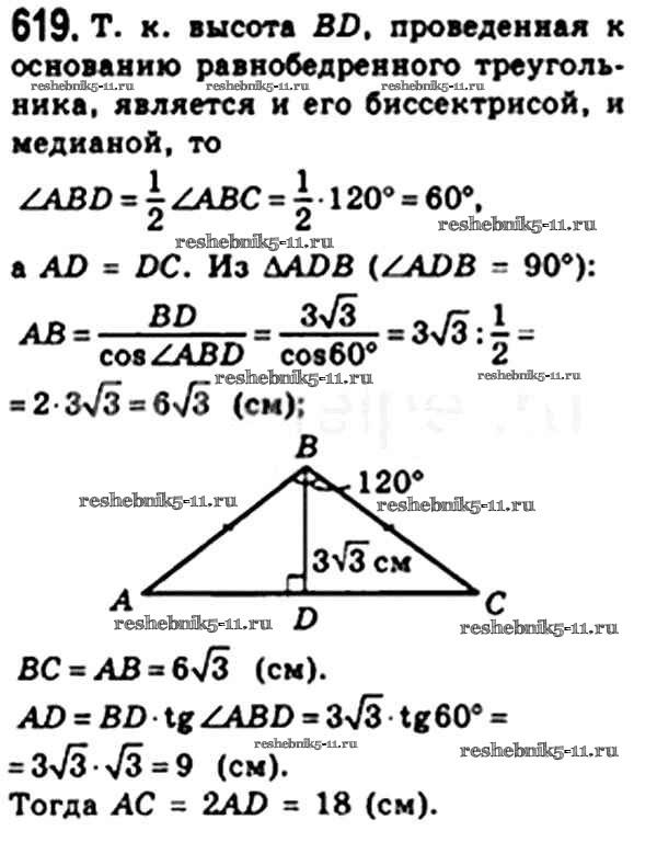 Готовая домашняя работа с ответами по Геометрии за 8 класс Мерзляк, Полонский, Якир Учебник Алгоритм успеха Вентана-граф 2015 ФГОС - § 18. Решение прямоугольных треугольников 619