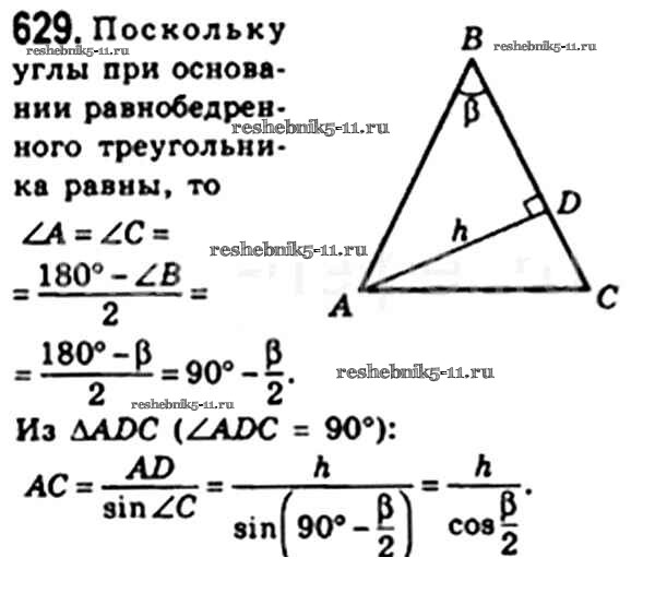 Готовая домашняя работа с ответами по Геометрии за 8 класс Мерзляк, Полонский, Якир Учебник Алгоритм успеха Вентана-граф 2015 ФГОС - § 18. Решение прямоугольных треугольников 629