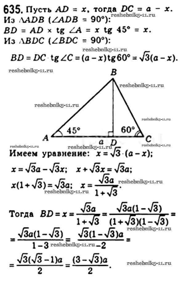 Готовая домашняя работа с ответами по Геометрии за 8 класс Мерзляк, Полонский, Якир Учебник Алгоритм успеха Вентана-граф 2015 ФГОС - § 18. Решение прямоугольных треугольников 635