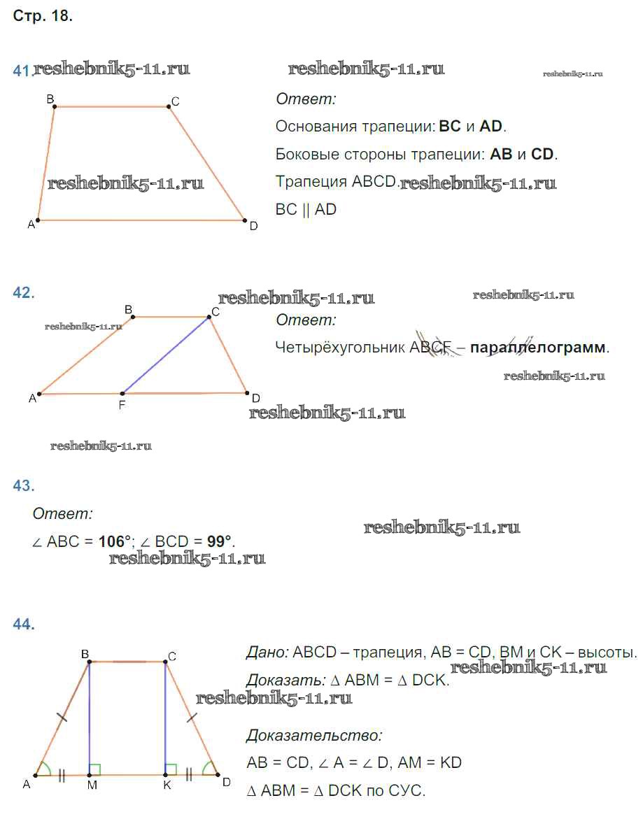 Готовая домашняя работа с ответами по Геометрии за 8 класс Мищенко Рабочая тетрадь УМК Экзамен 2016 ФГОС - Страницы 18