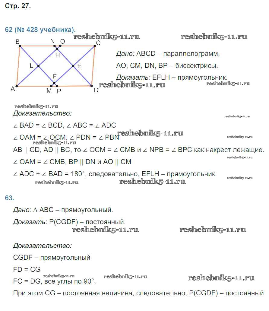 Готовая домашняя работа с ответами по Геометрии за 8 класс Мищенко Рабочая тетрадь УМК Экзамен 2016 ФГОС - Страницы 27