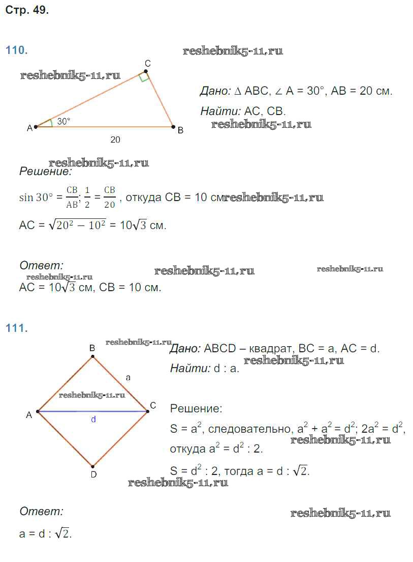Готовая домашняя работа с ответами по Геометрии за 8 класс Мищенко Рабочая тетрадь УМК Экзамен 2016 ФГОС - Страницы 49