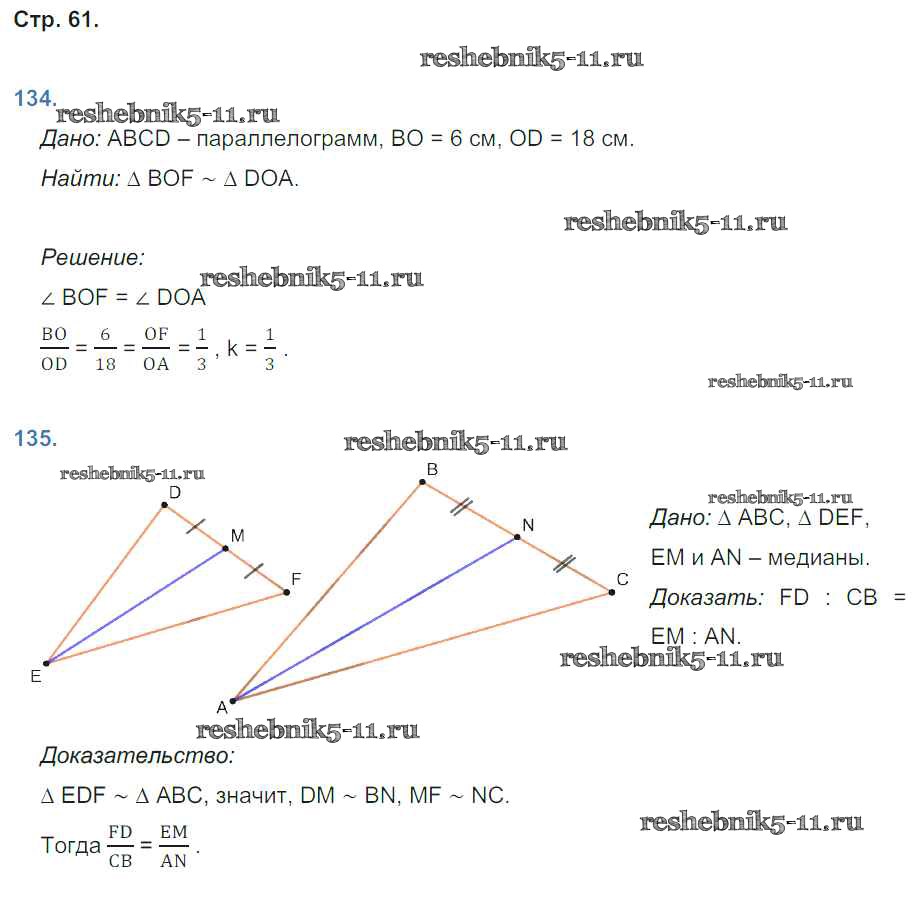 Готовая домашняя работа с ответами по Геометрии за 8 класс Мищенко Рабочая тетрадь УМК Экзамен 2016 ФГОС - Страницы 61