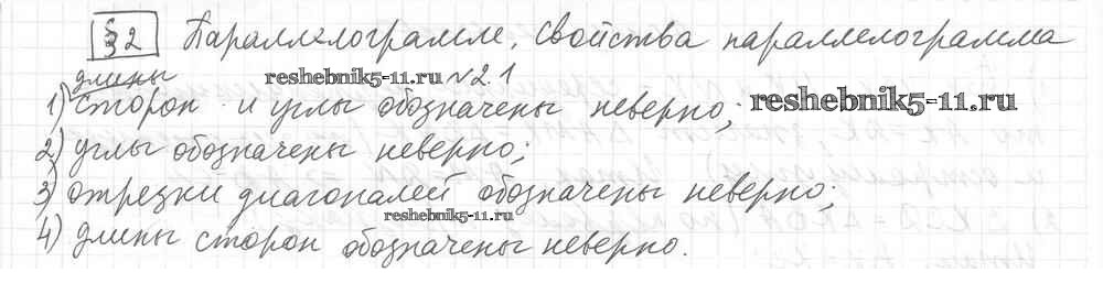 Готовая домашняя работа с ответами по Геометрии за 8 класс Мерзляк, Поляков Учебник Алгоритм успеха Углубленный уровень Вентана-граф 2020 ФГОС - § 2. Параллелограмм и его свойства 1