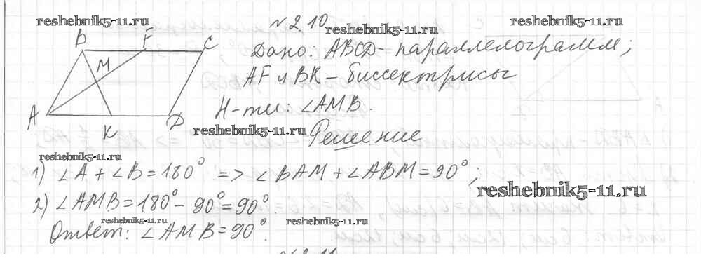 Готовая домашняя работа с ответами по Геометрии за 8 класс Мерзляк, Поляков Учебник Алгоритм успеха Углубленный уровень Вентана-граф 2020 ФГОС - § 2. Параллелограмм и его свойства 10
