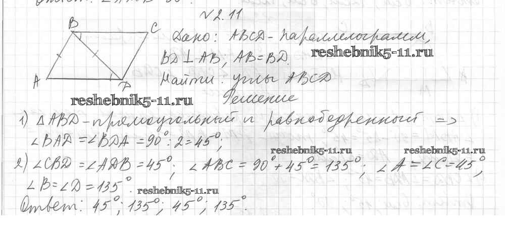 Готовая домашняя работа с ответами по Геометрии за 8 класс Мерзляк, Поляков Учебник Алгоритм успеха Углубленный уровень Вентана-граф 2020 ФГОС - § 2. Параллелограмм и его свойства 11