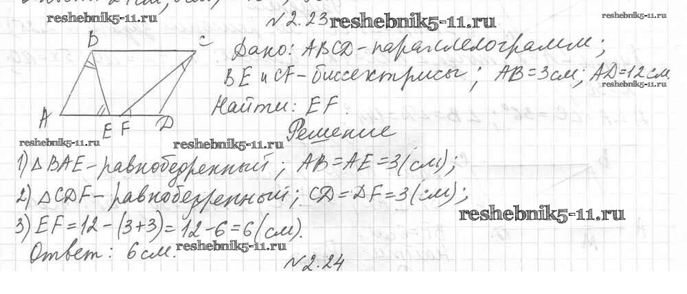 Готовая домашняя работа с ответами по Геометрии за 8 класс Мерзляк, Поляков Учебник Алгоритм успеха Углубленный уровень Вентана-граф 2020 ФГОС - § 2. Параллелограмм и его свойства 23