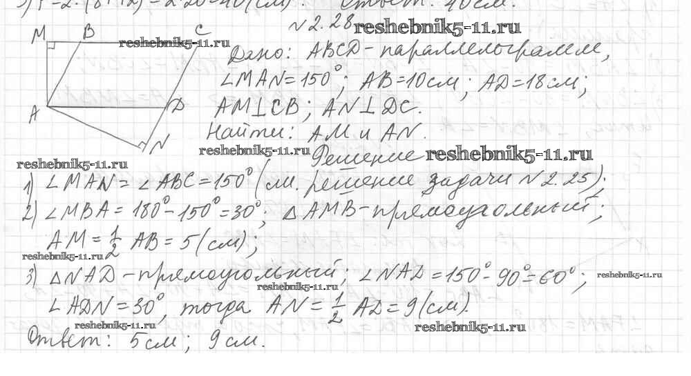 Готовая домашняя работа с ответами по Геометрии за 8 класс Мерзляк, Поляков Учебник Алгоритм успеха Углубленный уровень Вентана-граф 2020 ФГОС - § 2. Параллелограмм и его свойства 28