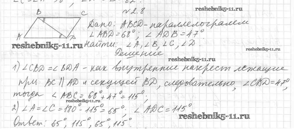 Готовая домашняя работа с ответами по Геометрии за 8 класс Мерзляк, Поляков Учебник Алгоритм успеха Углубленный уровень Вентана-граф 2020 ФГОС - § 2. Параллелограмм и его свойства 8
