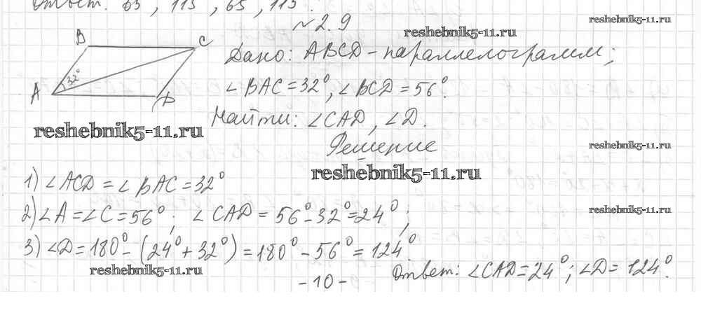Готовая домашняя работа с ответами по Геометрии за 8 класс Мерзляк, Поляков Учебник Алгоритм успеха Углубленный уровень Вентана-граф 2020 ФГОС - § 2. Параллелограмм и его свойства 9