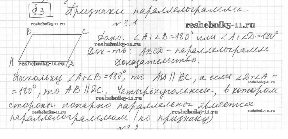 § 3. Признаки параллелограмма