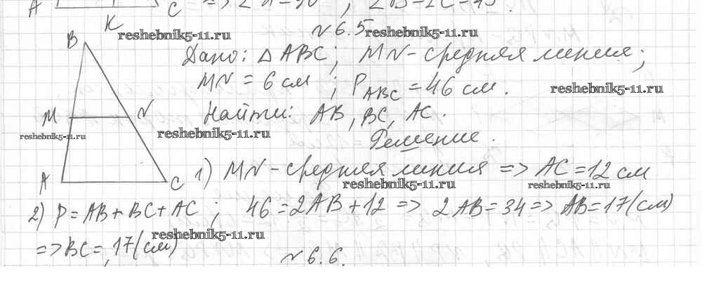 Готовая домашняя работа с ответами по Геометрии за 8 класс Мерзляк, Поляков Учебник Алгоритм успеха Углубленный уровень Вентана-граф 2020 ФГОС - § 6. Средняя линия треугольника 5