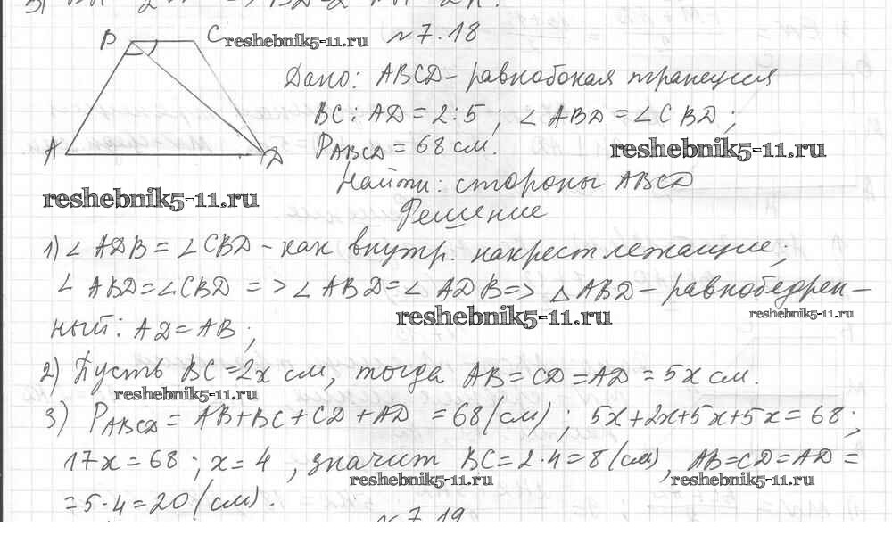 Готовая домашняя работа с ответами по Геометрии за 8 класс Мерзляк, Поляков Учебник Алгоритм успеха Углубленный уровень Вентана-граф 2020 ФГОС - § 7. Трапеция 18