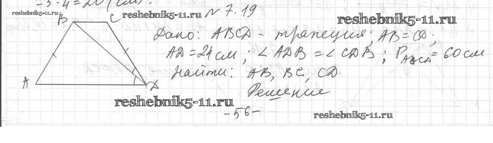 Готовая домашняя работа с ответами по Геометрии за 8 класс Мерзляк, Поляков Учебник Алгоритм успеха Углубленный уровень Вентана-граф 2020 ФГОС - § 7. Трапеция 19