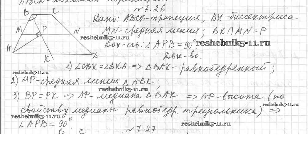 Готовая домашняя работа с ответами по Геометрии за 8 класс Мерзляк, Поляков Учебник Алгоритм успеха Углубленный уровень Вентана-граф 2020 ФГОС - § 7. Трапеция 26