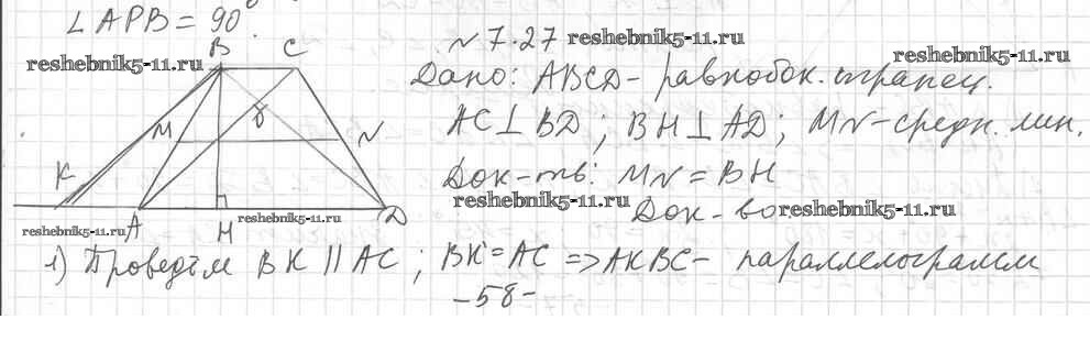 Готовая домашняя работа с ответами по Геометрии за 8 класс Мерзляк, Поляков Учебник Алгоритм успеха Углубленный уровень Вентана-граф 2020 ФГОС - § 7. Трапеция 27