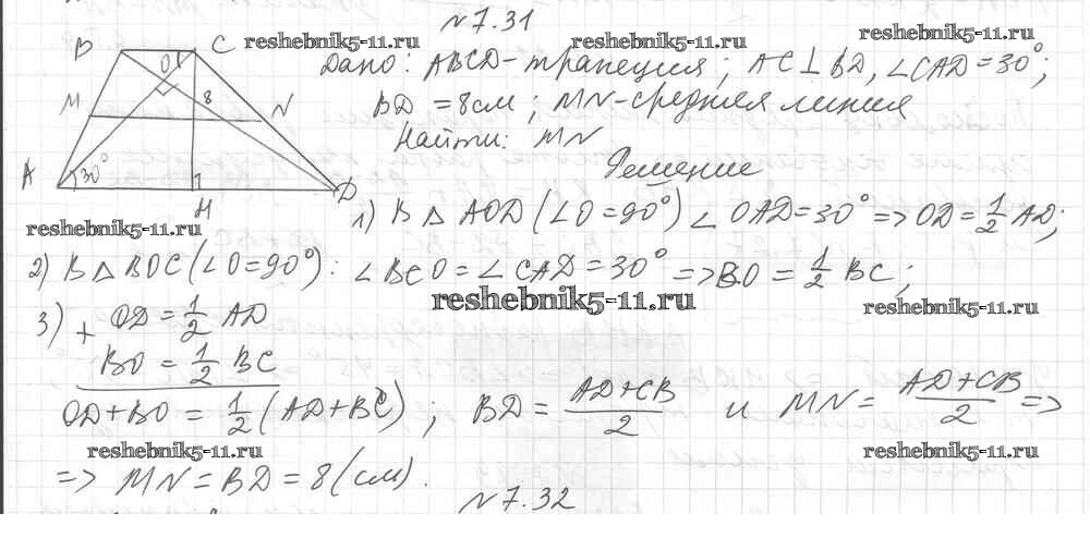 Готовая домашняя работа с ответами по Геометрии за 8 класс Мерзляк, Поляков Учебник Алгоритм успеха Углубленный уровень Вентана-граф 2020 ФГОС - § 7. Трапеция 31