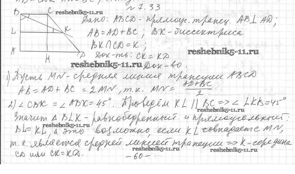 Готовая домашняя работа с ответами по Геометрии за 8 класс Мерзляк, Поляков Учебник Алгоритм успеха Углубленный уровень Вентана-граф 2020 ФГОС - § 7. Трапеция 33