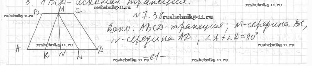 Готовая домашняя работа с ответами по Геометрии за 8 класс Мерзляк, Поляков Учебник Алгоритм успеха Углубленный уровень Вентана-граф 2020 ФГОС - § 7. Трапеция 38