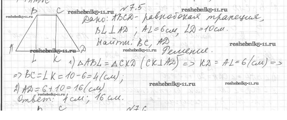 Готовая домашняя работа с ответами по Геометрии за 8 класс Мерзляк, Поляков Учебник Алгоритм успеха Углубленный уровень Вентана-граф 2020 ФГОС - § 7. Трапеция 5