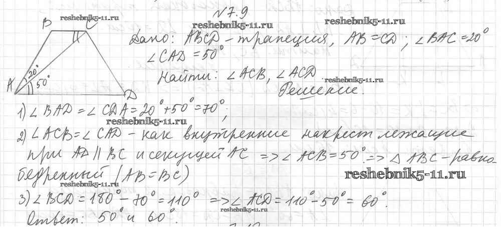 Готовая домашняя работа с ответами по Геометрии за 8 класс Мерзляк, Поляков Учебник Алгоритм успеха Углубленный уровень Вентана-граф 2020 ФГОС - § 7. Трапеция 9