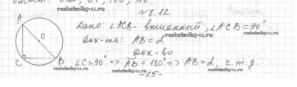 Готовая домашняя работа с ответами по Геометрии за 8 класс Мерзляк, Поляков Учебник Алгоритм успеха Углубленный уровень Вентана-граф 2020 ФГОС - § 8. Центральные и вписанные углы 12