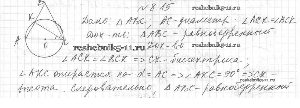 Готовая домашняя работа с ответами по Геометрии за 8 класс Мерзляк, Поляков Учебник Алгоритм успеха Углубленный уровень Вентана-граф 2020 ФГОС - § 8. Центральные и вписанные углы 15