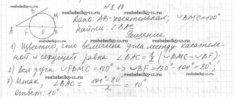 Готовая домашняя работа с ответами по Геометрии за 8 класс Мерзляк, Поляков Учебник Алгоритм успеха Углубленный уровень Вентана-граф 2020 ФГОС - § 8. Центральные и вписанные углы 18