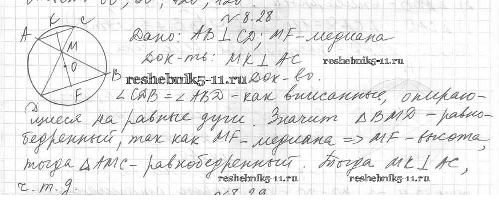 Готовая домашняя работа с ответами по Геометрии за 8 класс Мерзляк, Поляков Учебник Алгоритм успеха Углубленный уровень Вентана-граф 2020 ФГОС - § 8. Центральные и вписанные углы 28