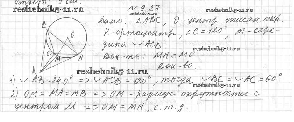 Готовая домашняя работа с ответами по Геометрии за 8 класс Мерзляк, Поляков Учебник Алгоритм успеха Углубленный уровень Вентана-граф 2020 ФГОС - § 9. Применение свойств центральных и вписанных углов 27