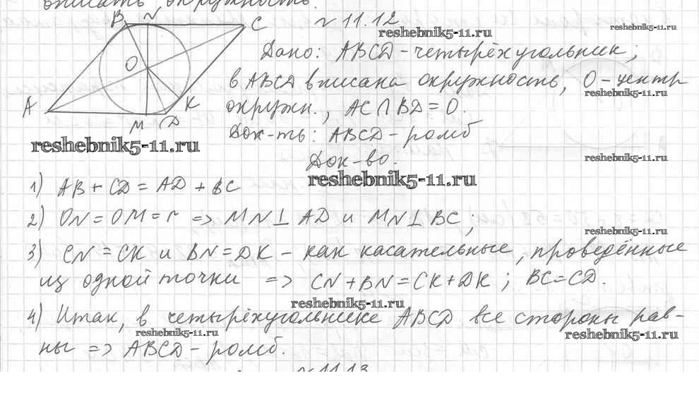 Готовая домашняя работа с ответами по Геометрии за 8 класс Мерзляк, Поляков Учебник Алгоритм успеха Углубленный уровень Вентана-граф 2020 ФГОС - § 11. Описанные четырехугольники 12