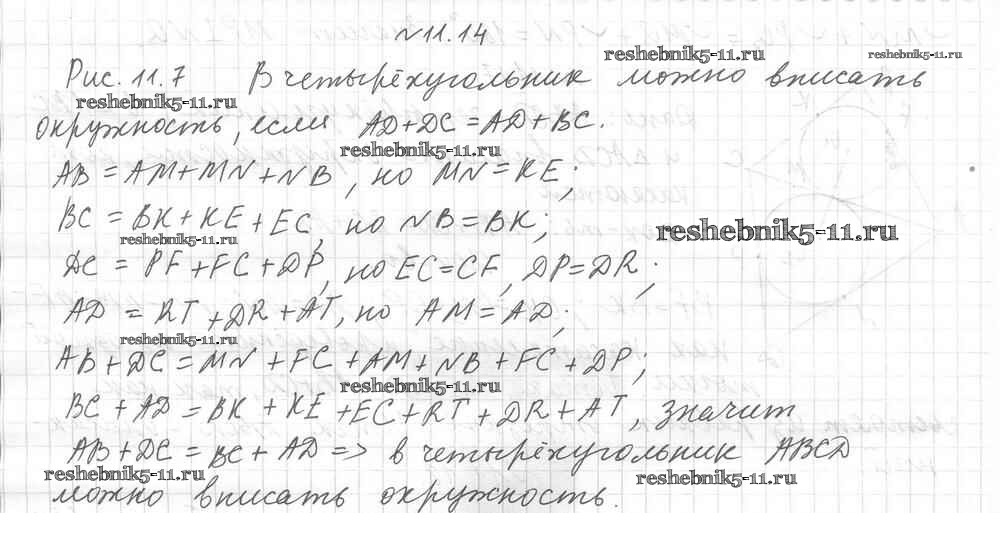 Готовая домашняя работа с ответами по Геометрии за 8 класс Мерзляк, Поляков Учебник Алгоритм успеха Углубленный уровень Вентана-граф 2020 ФГОС - § 11. Описанные четырехугольники 14