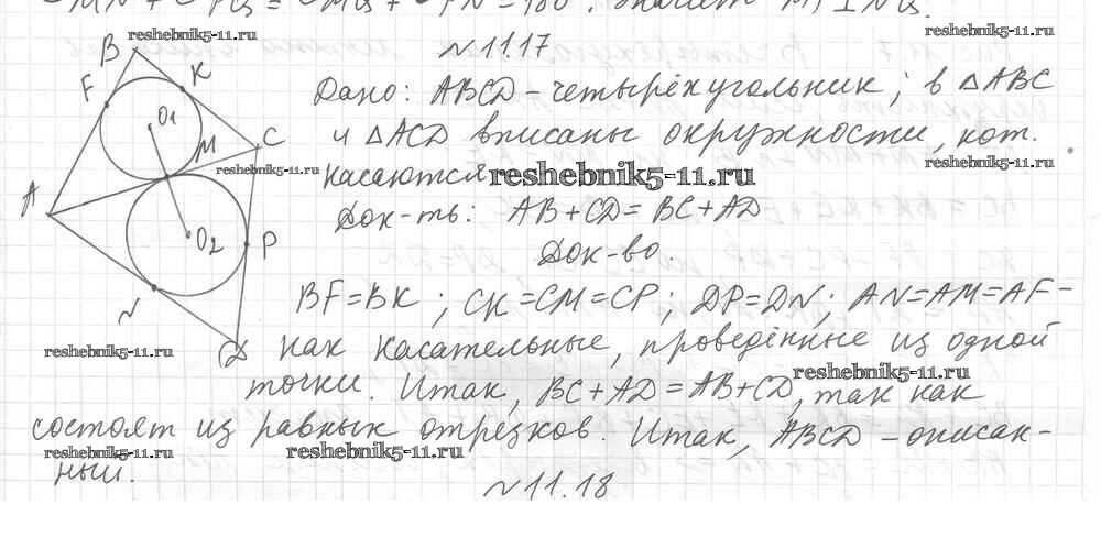 Готовая домашняя работа с ответами по Геометрии за 8 класс Мерзляк, Поляков Учебник Алгоритм успеха Углубленный уровень Вентана-граф 2020 ФГОС - § 11. Описанные четырехугольники 17