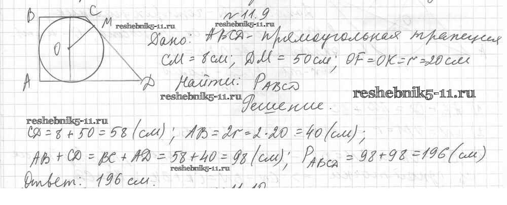 Готовая домашняя работа с ответами по Геометрии за 8 класс Мерзляк, Поляков Учебник Алгоритм успеха Углубленный уровень Вентана-граф 2020 ФГОС - § 11. Описанные четырехугольники 9