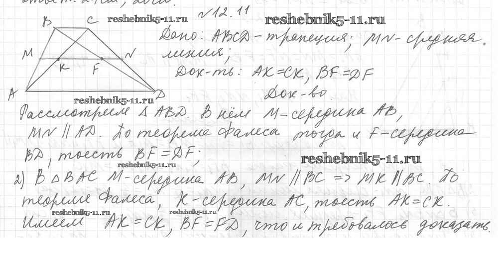 Готовая домашняя работа с ответами по Геометрии за 8 класс Мерзляк, Поляков Учебник Алгоритм успеха Углубленный уровень Вентана-граф 2020 ФГОС - § 12. Теорема Фалеса 11