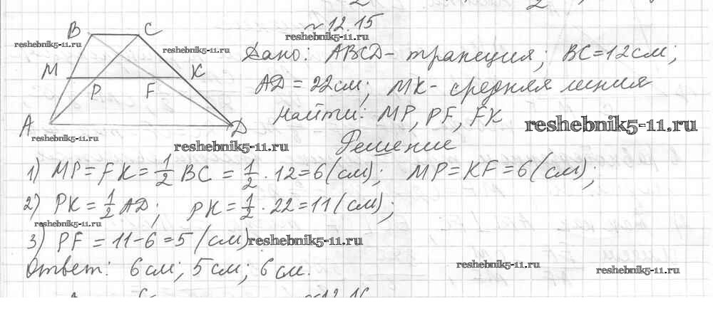 Готовая домашняя работа с ответами по Геометрии за 8 класс Мерзляк, Поляков Учебник Алгоритм успеха Углубленный уровень Вентана-граф 2020 ФГОС - § 12. Теорема Фалеса 15