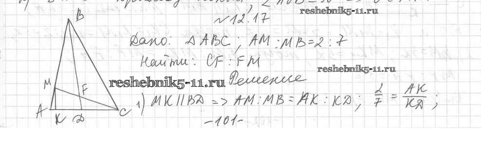 Готовая домашняя работа с ответами по Геометрии за 8 класс Мерзляк, Поляков Учебник Алгоритм успеха Углубленный уровень Вентана-граф 2020 ФГОС - § 12. Теорема Фалеса 17