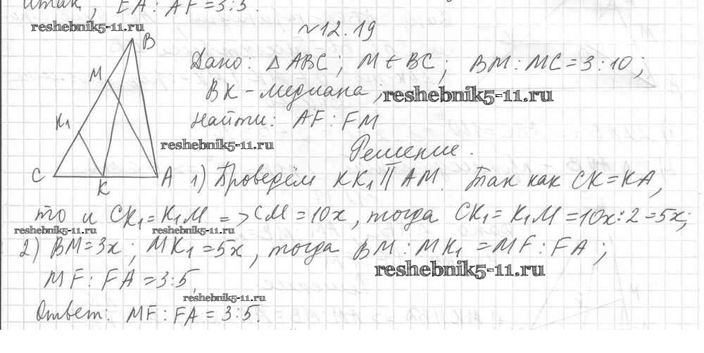 Готовая домашняя работа с ответами по Геометрии за 8 класс Мерзляк, Поляков Учебник Алгоритм успеха Углубленный уровень Вентана-граф 2020 ФГОС - § 12. Теорема Фалеса 19