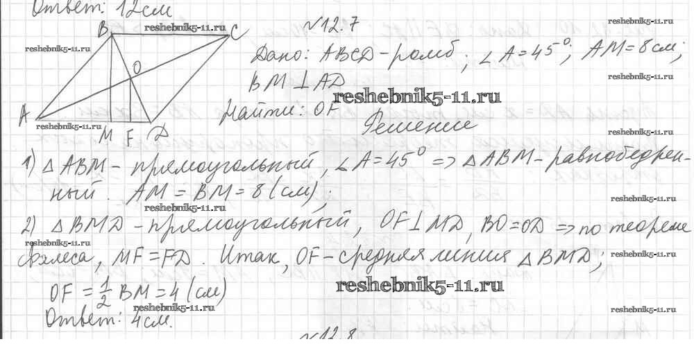 Геометрия за 8 класс Мерзляк Учебник Алгоритм успеха Углубленный уровень Вентана-граф § 12 7